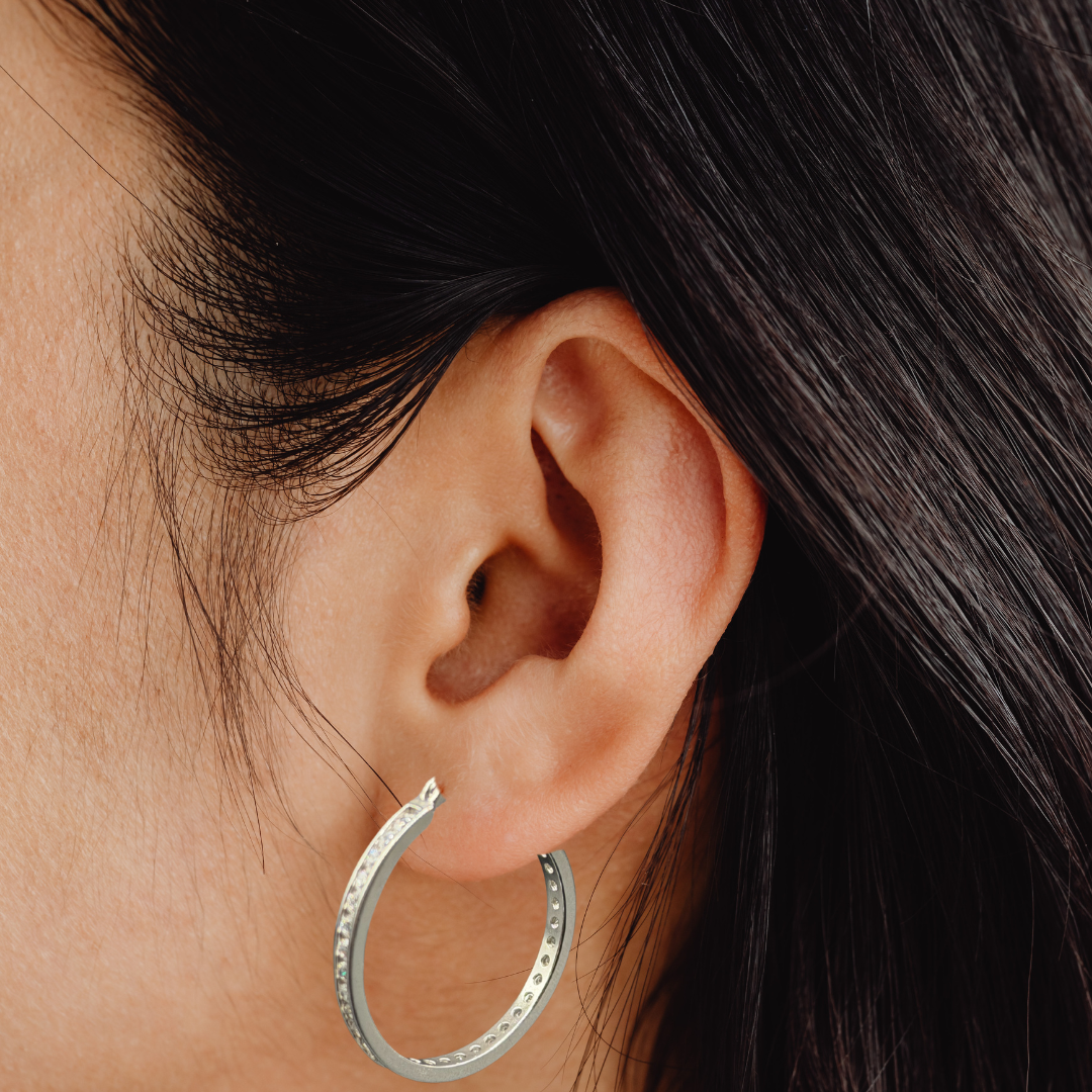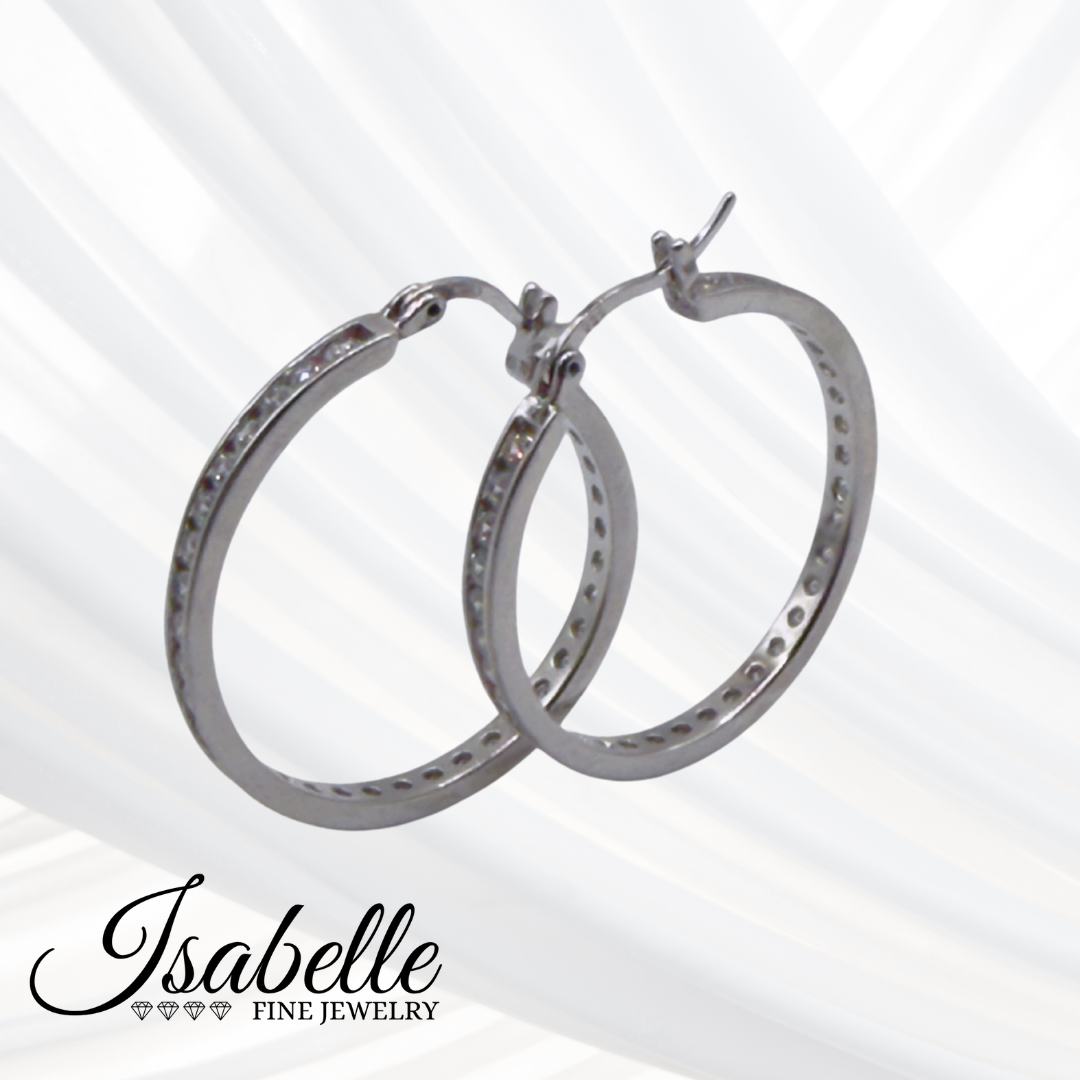 These statement hoop earrings are fully adorned with shimmering stones, creating a radiant frame of light that commands attention. Designed to elevate any look, they embody classic glamour, confidence, and timeless sophistication. Crafted in 925 …