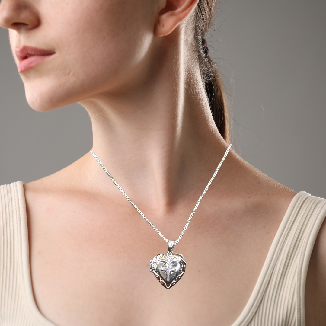 This heart-shaped locket pendant opens to hold a photo inside, allowing you to carry a special memory close to your heart. Designed for our Valentine’s Collection, it symbolizes a love that protects, remembers, and stays with you every day. …