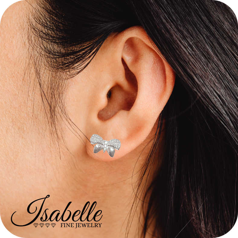Inspired by the fluid elegance of a ribbon in motion, these stud earrings balance sparkle and purity with effortless grace. The upper half is delicately set with shimmering stones, while the lower half reveals the clean, radiant glow of polished …