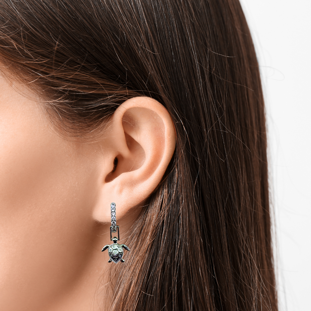 Inspired by the calm strength of the ocean, these elegant drop earrings feature delicate sea turtles that symbolize protection, longevity, and freedom. Designed with a dual-function style, the turtle charms can be removed, allowing the hoops to be …